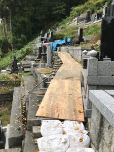 (墓所までは)運搬車はかろうじて使えますがクレーンは搬入出来ませんでした。