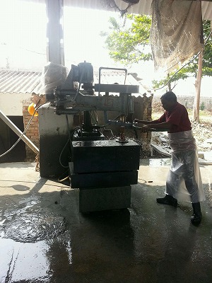 今回の出張の目的の一つである、石材研磨の指導を行いました。