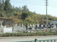 こんな感じで何メートルかおきに石の像が道路両側の脇に設置されており、その後には石材加工工場や会社が何キロにも渡ってずっと続いていました。