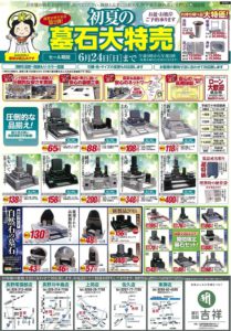 2018.06.17 社員ブログ 24日までです@初夏の墓石大特価 気がつけば「初夏の墓石大特売」も残すところあと1週間程になっておりました。 お盆までにお考えの方はそろそろ決め時だと思いますので 是非お近くの弊社各店舗へ足を運んでください。お待ちしております。 社員ブログ 来週まで!前の記事 台湾に行ってきました⑭大佛禅院①次の記事