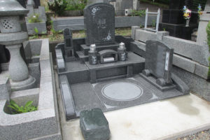 石塔に彫られた文字と花柄彫刻が映えて、とても素敵なデザインのお墓が完成しました。
