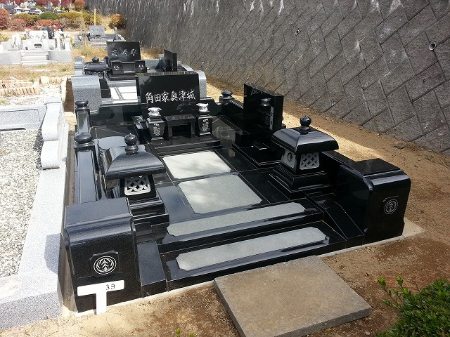 石塔/インド産高級黒御影石SLK;外柵/インド産黒御影石BGL。