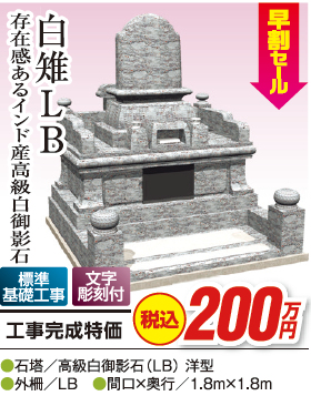 早割セール2022開催!! 早割セール2022開催 お客様の墓地寸法に合わせてご対応いたします。 吉祥全店10店舗が総力を合わせてお届けする、年に一度の大セール!新春恒例「早割セール」がいよいよ開催決定!令和4年2月5日(土)~3月27日(日)迄の日程で開催されます! 墓石製品を中心に、オフシーズンだからできる激安特価にて、お客様の墓地寸法、ご要望に合わせてお見積りいたします(見積無料)。 長野県内全域はもちろん、近県も工事可能!年内に建立をお考えの方はこの機会にぜひ最寄りの展示場にご来店いただくか、お電話お待ちしております。 お墓のこと、石材のことなら何でもご相談ください!社員一同、皆様のお問い合わせを心よりお待ちしております。 イベントについて問い合わせる 【無料】カタログ差し上げます!前の記事 2022春の墓石セール開催中!次の記事