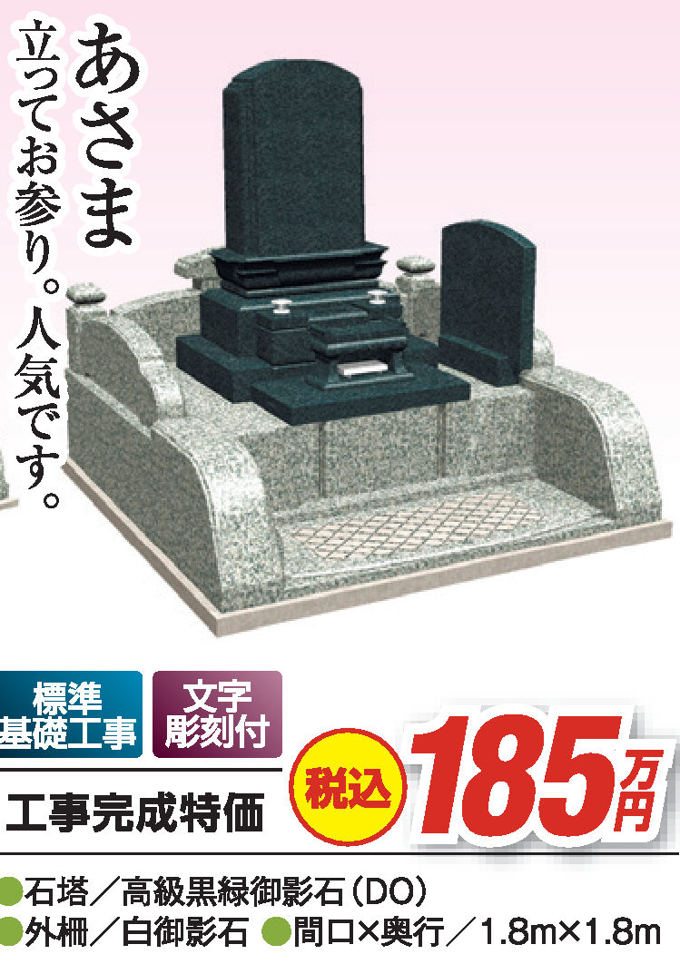 2023春の墓石セール開催中! 春爛漫 春の墓石セール20234/22(土)より開催中!! お客様の墓地寸法に合わせてご対応いたします。 吉祥全店11店舗が総力をあげて大特売をいたします!!2023年4月22日(土)~5月21日(日)の期間中開催! お盆・秋彼岸に建立をお考えの方はこの機会がチャンスです!! お客様の墓地寸法、ご要望に合わせてお見積りいたします(見積無料)。 長野県内全域はもちろん、近県も工事可能!この機会にぜひ最寄りの展示場にご来店いただくか、お電話お待ちしております。 お墓のこと、石材のことなら何でもご相談ください!社員一同、皆様のお問い合わせ、ご来店をを心よりお待ちしております。 ※お客様と従業員への新型コロナウイルス感染症拡大予防対策の取り組みを行っております。 イベントについて問い合わせる 早割セール2023開催中!!前の記事 【セールのお知らせ】2023夏の墓石スーパーセール開催…次の記事