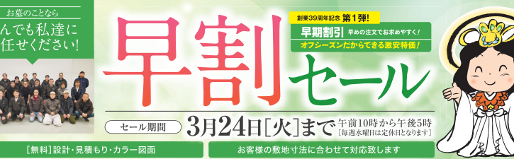 現在、当店では2月6日(金)~3月24日(火)まで「早割セール」を開催しております!
